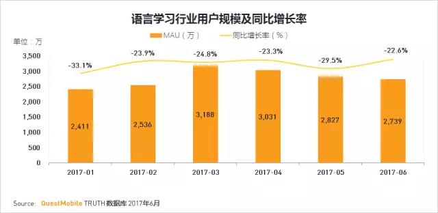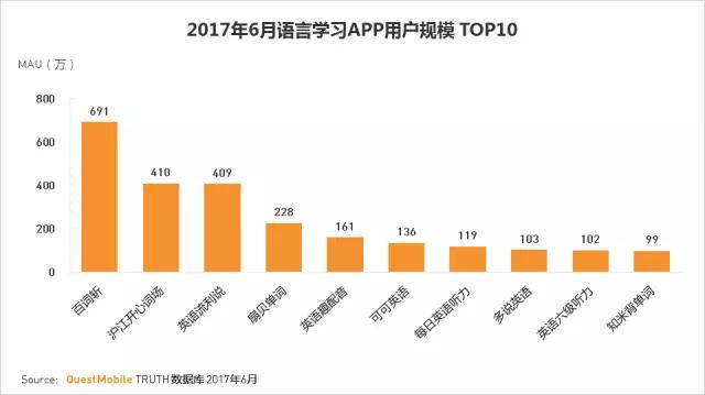 语言学习APP是较为细分的行业之一,以英语学习类APP为主。