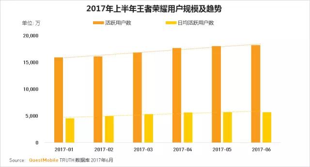 2017年最火的游戏一定是王者荣耀,没有之一,这款游戏上半年用户规模持续稳定扩大,相信随着暑假的到来,更多学生用户也会继续参与战斗。