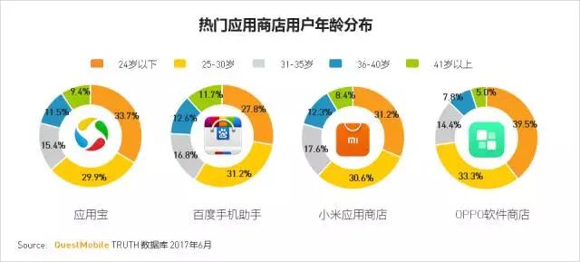 年龄分布:30岁以下用户是应用商店的主体,OPPO软件商店近四成是24岁以下更年轻的用户。