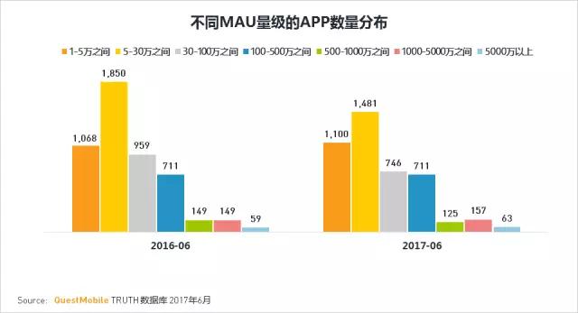 1.各规模区间MAU APP数量