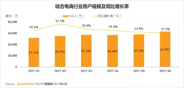 每年6月是电商大促的重要时间,综合电商行业用户也从Q1的5.7亿增至Q2的6.3亿。