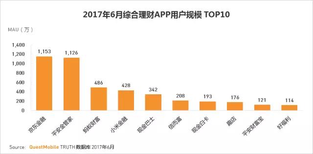 •京东金融和平安金管家APP在月度用户规模领跑行业。