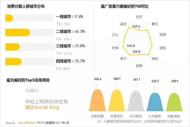 由此可见,消费分期用户是一群二三线城市的年轻上班族和学生党,他们是娱乐social king,动如脱兔。