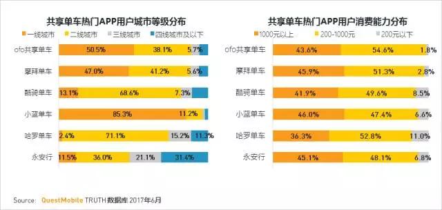 共享单车用户主要分布在一二线城市中;且消费能力高于移动用户整体。