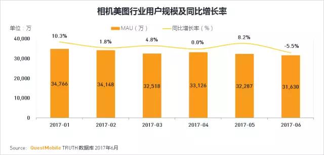 随着安卓和苹果手机在硬件设备上的升级,用户已经可以通过自带的相机应用满足部分需求,相机美图应用行业也受到一些影响,用户总规模呈现缓慢下降的趋势。