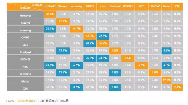 5. 热门安卓手机换机用户去向