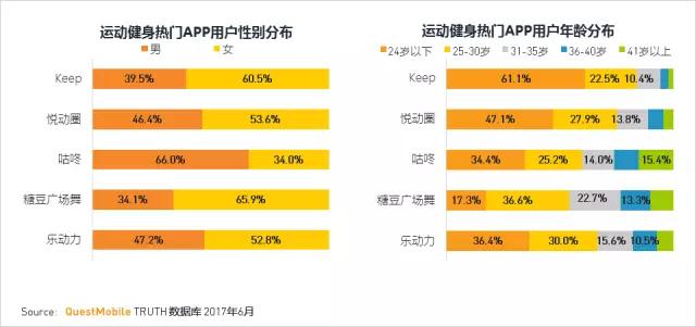 运动健身热门APP中,糖豆广场舞的用户以中老年女性用户为主,也符合其应用定位。