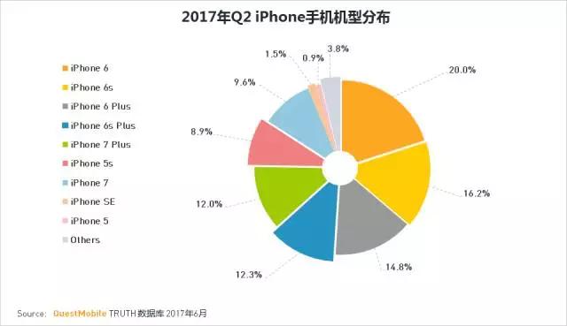 iPhone6及6S占比依然最高,近40%。土豪iPhone7及7P目前占比超过20%,较2017年Q1占比提升4%。