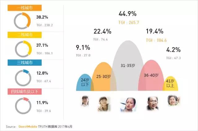 城市等级分布:城市等级分布与移动用户整体分布基本一致,二线城市用户占比最高。