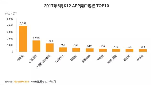 K12教育类APP,已成为很多学生完成作业的一种形式,行业用户规模已超过1亿。