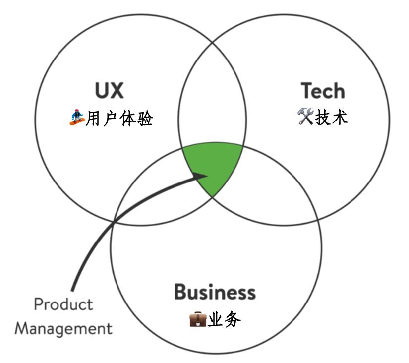 下面这张图也许你在以前就见过,它既简单而又优雅的展现出了产品经理本身是众多技能交集体。