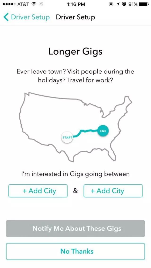 你还可以添加关注,比如关注旧金山到西雅图的送货请求,如果有用户提出这两个城市之间的送货请求,系统就能自动提醒你。