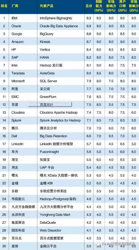 我截取了现阶段国内数据平台的排名,如下图:
