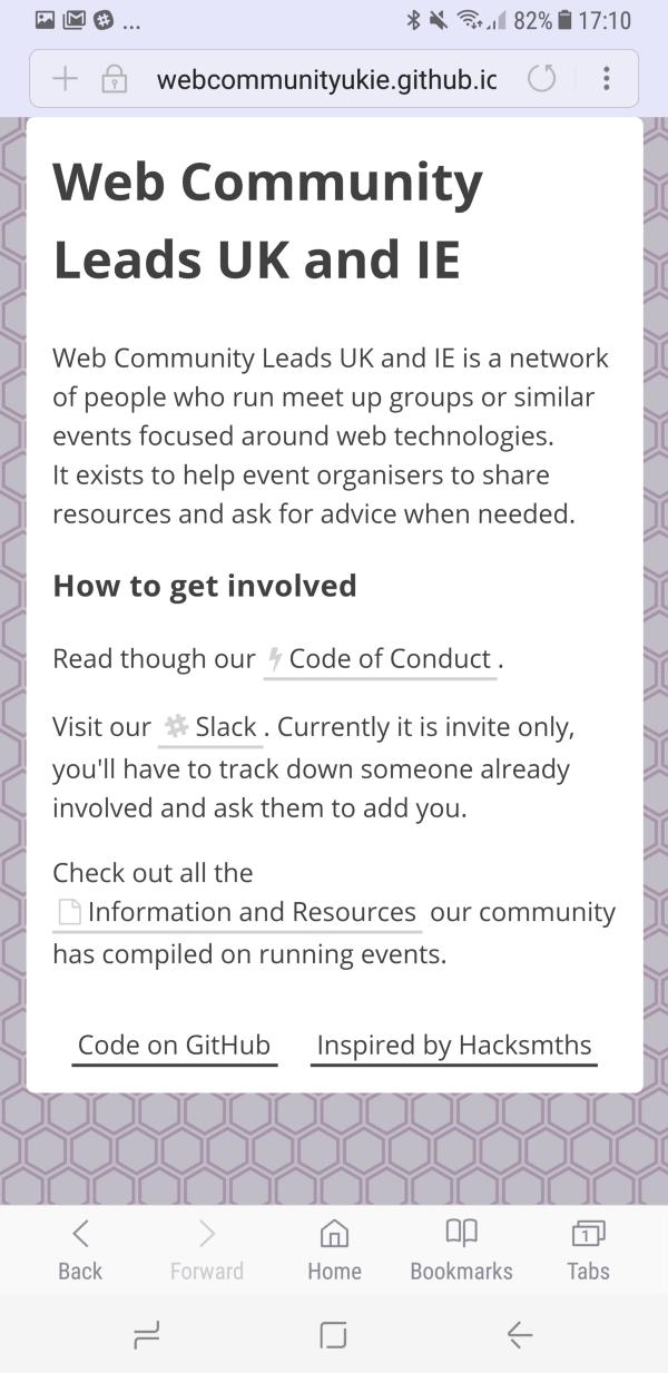 这是作者为了写这个科普贴子而特地制作的PWA页面,名为“Web Community Leads UK and IE”,是一个促进人们互相交流web技术的平台。
