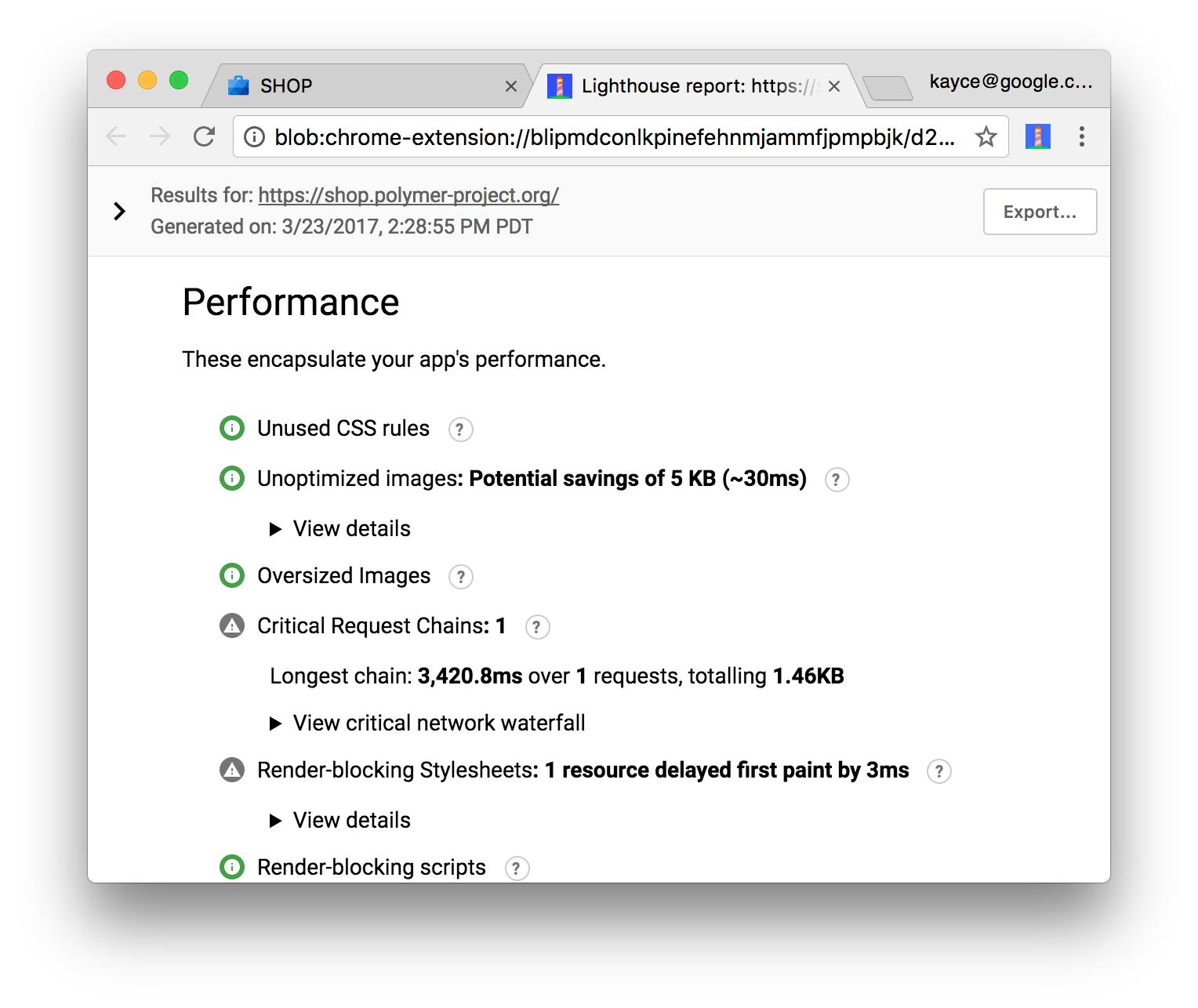 这时候再打开Lighthouse,就会发现测试结果大大不同了。