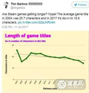 根据Steam平台2004年以来的游戏名称统计来看,Tim Garbos提出,游戏的名字呈现了一种逐渐缩短的趋势。