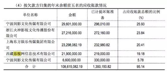 乐视网在华策集团应收账款金额前五名中的排名第二