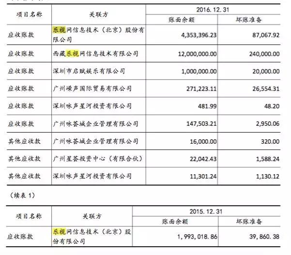 截止至2016年12月31日,乐视是咏声动漫的最大欠款方,2016年欠款共计1635万,2015年仍有199.3万元的拖欠款。