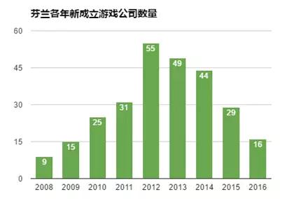 可以看出,芬兰游戏产业正处于发展阶段,大量公司于近年的移动游戏热潮中成立并正处于上升阶段,这一批公司也是我们推荐中国投资者关注的重点对象。下面我们将对成熟期、成长期和早期公司中的投资机会逐一分析点评。如下图所示,公司建立年份的数据也显示了当前活跃的芬兰游戏公司大多在2010-2015年间建立。