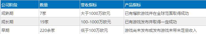 这批公司大多随2010年以来的移动游戏热潮建立,且众多公司属于前知名成熟及成长期公司员工建立的 “第二代游戏公司”。这类公司一般会在公司成立时进行第一轮种子融资(几十至几百万欧元)以支持其首款产品的开发,多数也会随后进行第二轮种子融资支持其游戏推广及后续游戏开发,但大多公司在进入成长期实现盈利后便会通过回购、上市、并购的方式帮助投资者退出,只有极少数公司会继续进行A轮及后续轮次融资。
