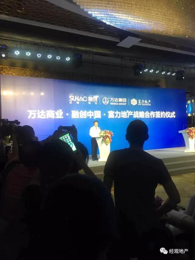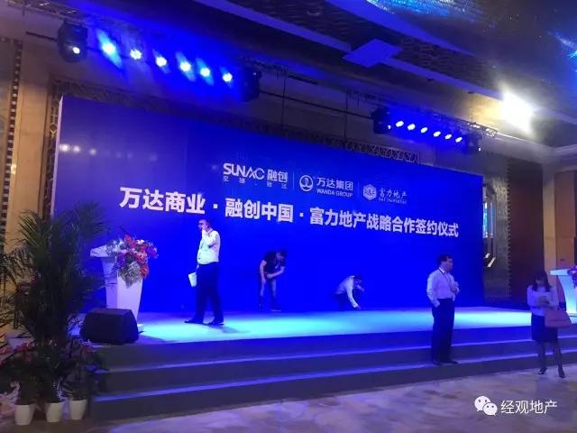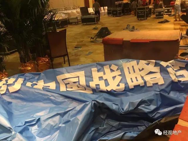 还是有一些敏感的记者打听到贵宾厅里的主角们出现了滞留。更有传言说,“乌龙!富力不来了”“老板们气得摔了杯子”,连只有万达和融创签约为内容的背景板照片都流了出来。