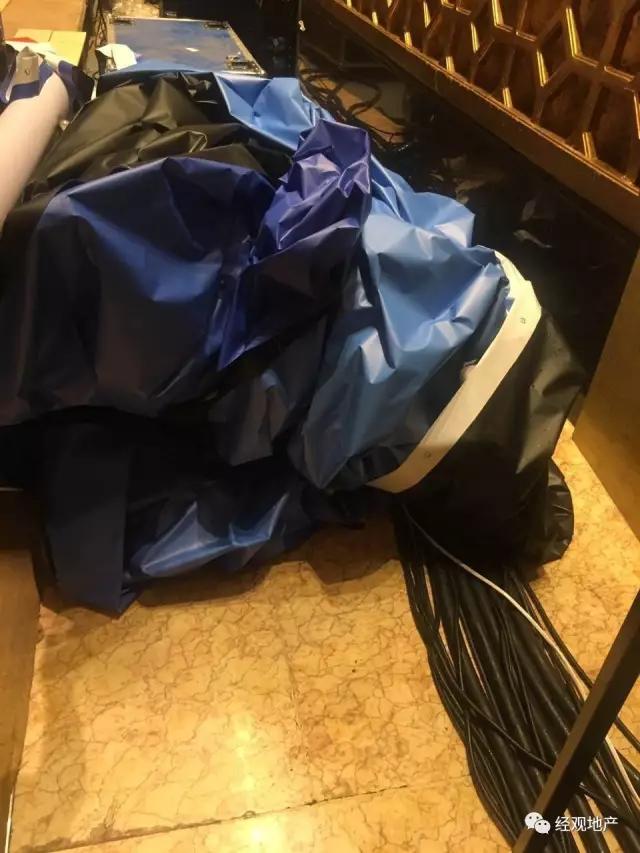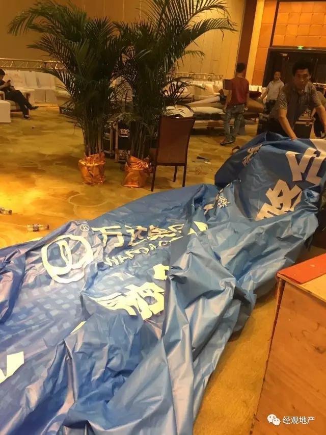 撤展人员把只写有万达融创两方合作的背景布铺平,问经观记者,你要吗?送给你