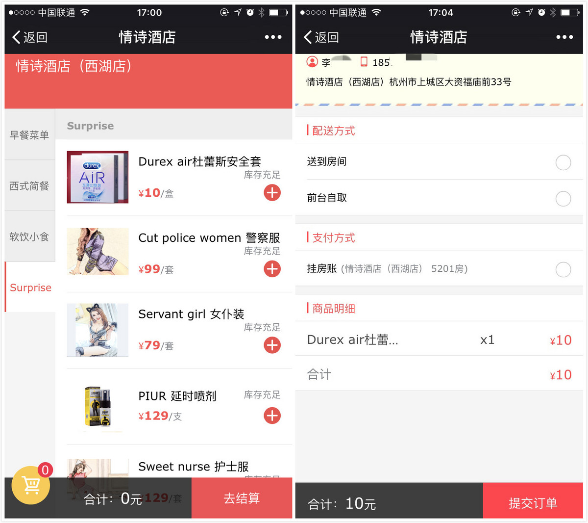 8、如果还觉得以上不够用,可以在线上再买。买完去前台取,或者要求送到房间。吃饭也是如此,情诗酒店没有公共餐厅。