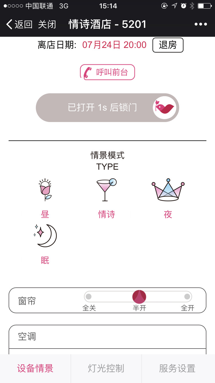 10、接着,带着未知的兴奋,我继续研究并倒腾了这间房的智能功能:用手机变换屋内的灯光模式、开窗帘、调温度等。