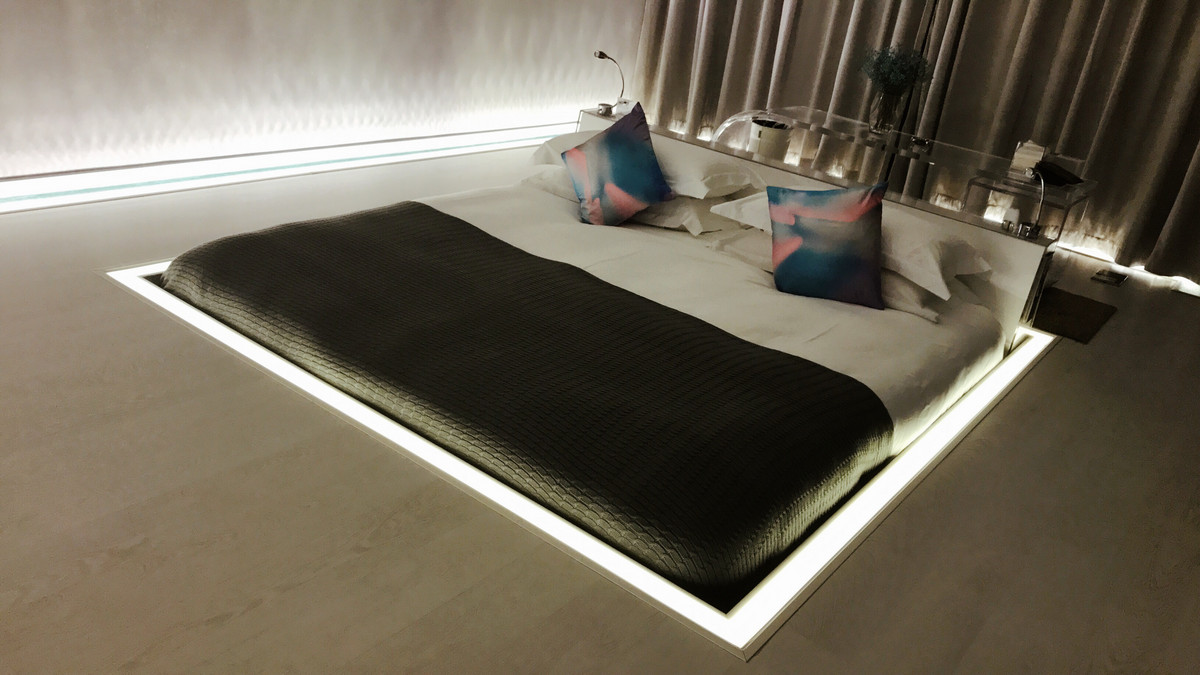 9、看到卧室,再次被惊到了——床是嵌在地下的~~~房间的设计非常简洁,给人一种非常放松的感觉。