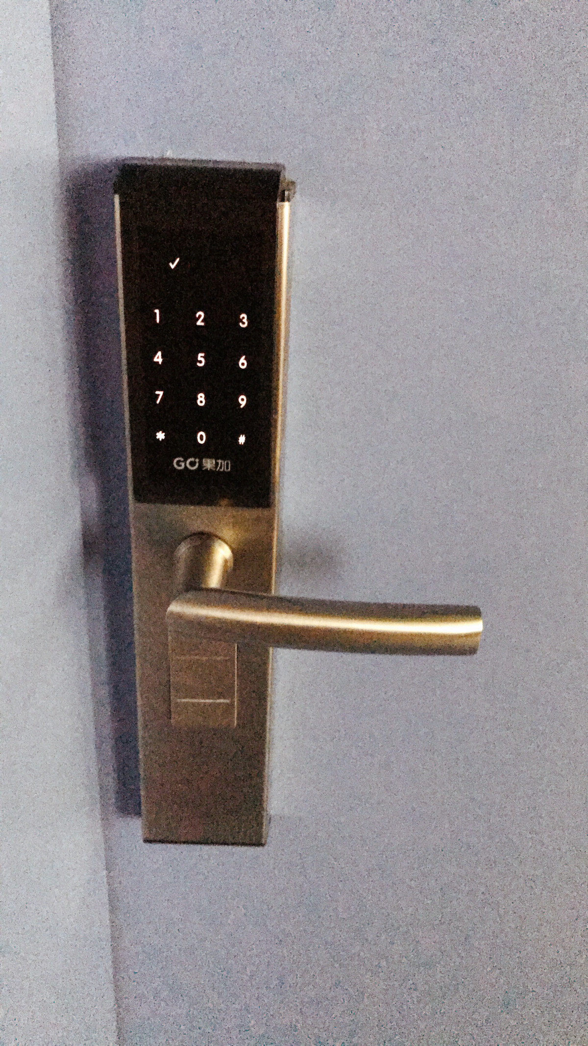 6、情诗酒店智能锁的开锁方式有两种:点击入住提醒页面,出现滑动开锁功能;或者直接在锁上输入此前在前台设的开锁密码。