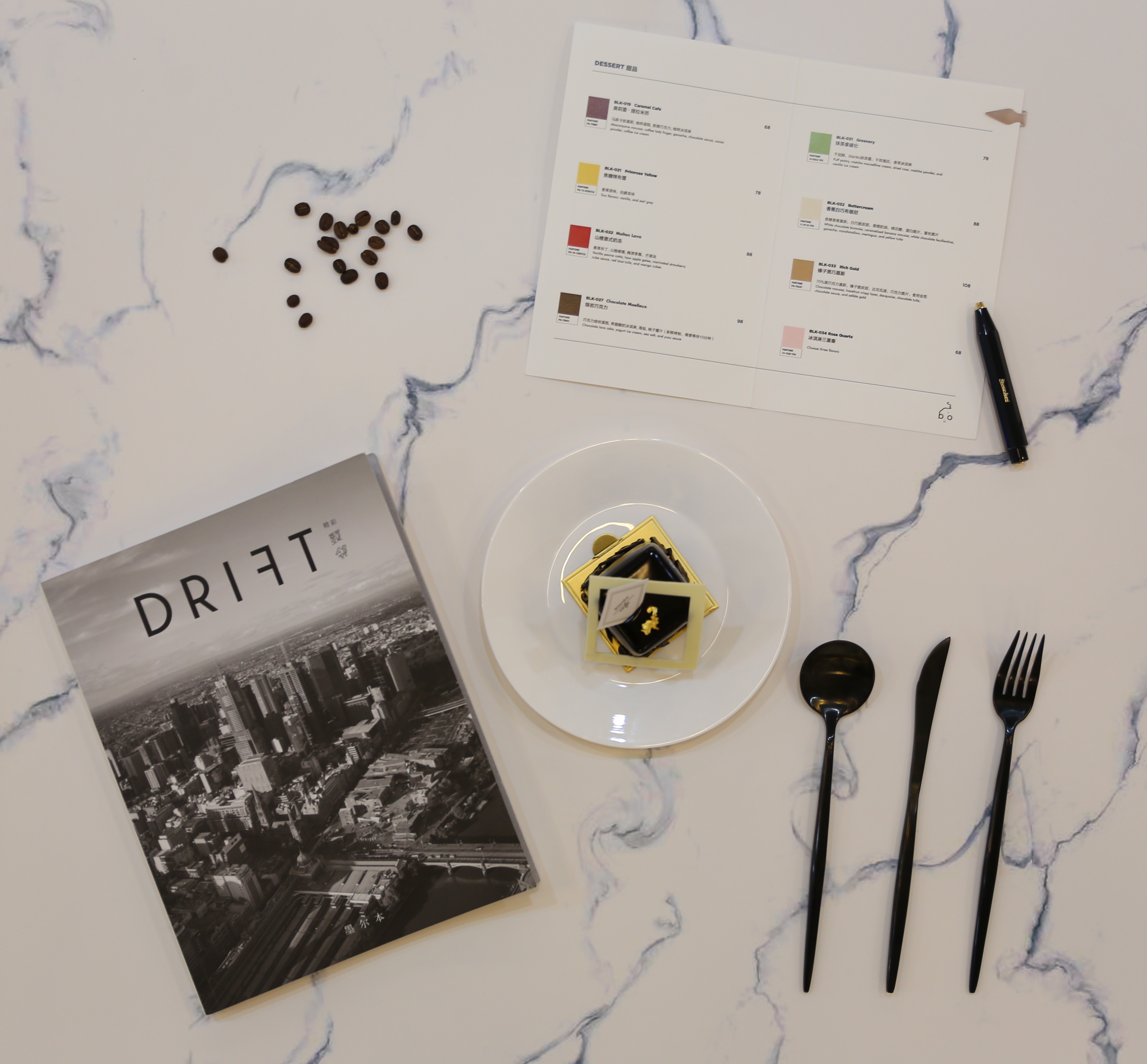 当你点好的甜点送上来时,餐垫纸上会标出桌上每一件餐具、杂志的信息和价格——相当于一份餐具菜单。从本质上看,这种所见即所买的形式,和 Eataly 、茑屋书店很像,都致力于为消费者构建场景化的消费。