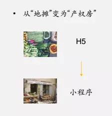 第二,H5跟小程序就像是“地摊”和“产权房”的关系。