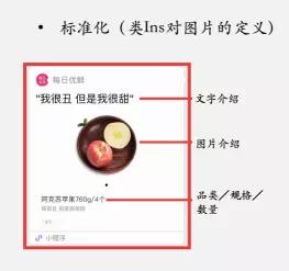 比如,我们看到现在的小程序,一个标签页,上面是一个文字介绍,下面是图片介绍,再下面是产品规格的描述,这是一种规范。