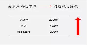 公众号繁荣的根本原因还是生产成本的极大降低,而小程序会把这个成本更进一步地下降。