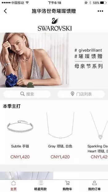 举个例子,施华洛世奇,它可以通过公众号来进行品牌的展示和宣传,通过微信个人号或者微信群来实现与客户的沟通和售后等,通过小程序来实现商品的购买。