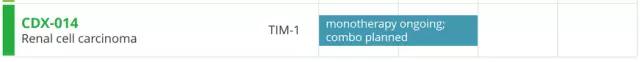 公司还有一款临床1期ADC产品CDX-014,靶点为T细胞免疫球蛋白粘蛋白-1(TIM-1),其在肾癌及卵巢癌中过表达。其使用Seattle Genetics的MMAE技术。