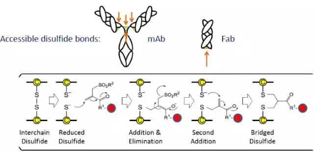 ThioBridge(Cros-Link)的原理如下。除Abzena旗下Polytherics的ThioBridge外,Sorrento旗下Concortis也有类似技术(见第四章2节)。