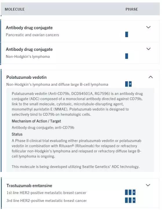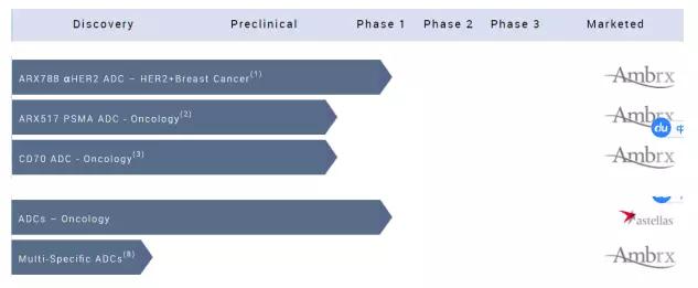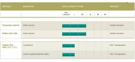 成立于1999年的纳斯达克上市公司,负责抗体药研发,拥有两个纯单抗药物。其在ADC领域的产品管线如下。