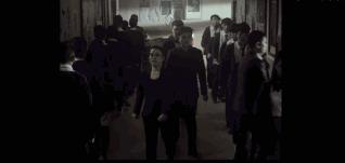 电闪雷鸣之下的红星中学,《悲惨世界》的前奏先进来,画面推到走廊,学生队列沉重踏步,宛若扛着木头的冉阿让及其狱友。