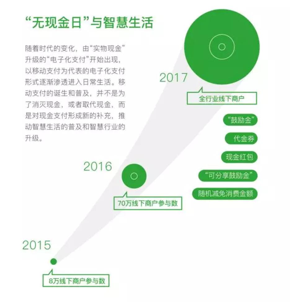 微信支付总结,今年的无现金日会在三个方面有提升,一是今年鼓励金可积累可分享给好友,借助社交优势,给商家引流,商家可以通过小程序在群里发优惠券。二是会投入巨额资金。三是会有鼓励金、代金券和现金红包等各类不同的营销玩法。具体可以看下图。