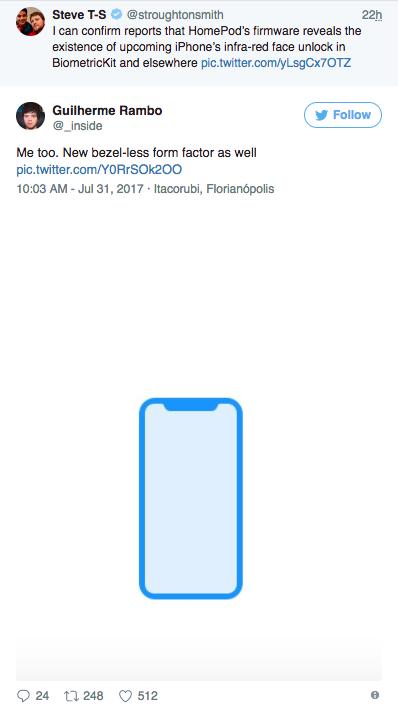 自家兄弟HomePod泄密,iPhone 8采用无边框设计以及面部识别功能