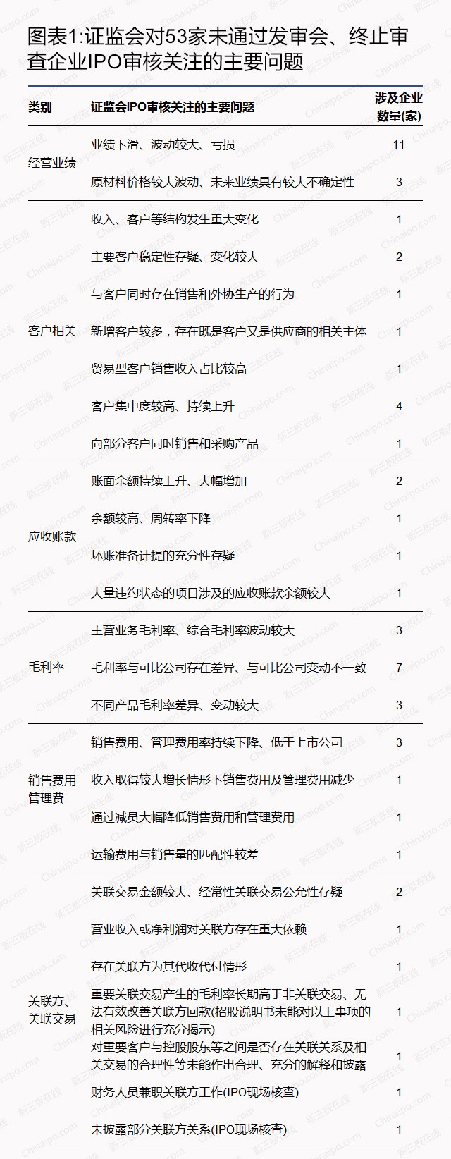 新三板在线统计发现,今年前四个月IPO被叫停的53家公司中,有11家公司的客户相关问题被证监会列主要关注问题。