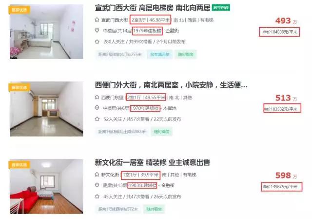 没错,这里就是北京西城区此前“天价学区房”频出的板块。尽管今年以来,针对天价学区房的问题,国家出台了诸多打击措施,但该区域的二手房房价依然在10万元/平米左右,尽管大部分二手房房龄已超过二十年,上世纪七八十年代建成的“老破小”更是随处可见。