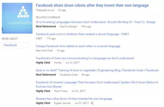 但是 Facebook 关闭该项目的新闻已经曝出半个多月了,而其 AI 聊天机器人「创造一种人类无法理解的语言」这事更是六月的旧闻了。为什么这件事现在又火起来了呢?