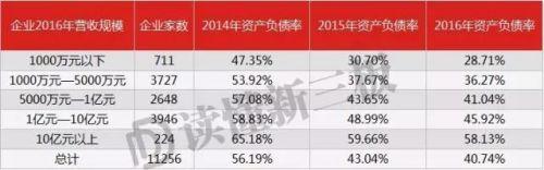 根据读懂新三板研究中心数据,营收规模在10亿元以上的224家企业,从2014年到2016年负债率仅下降了5.52%,而营收规模在1000万元以下的711家企业同期负债率减少了18.64个百分点。