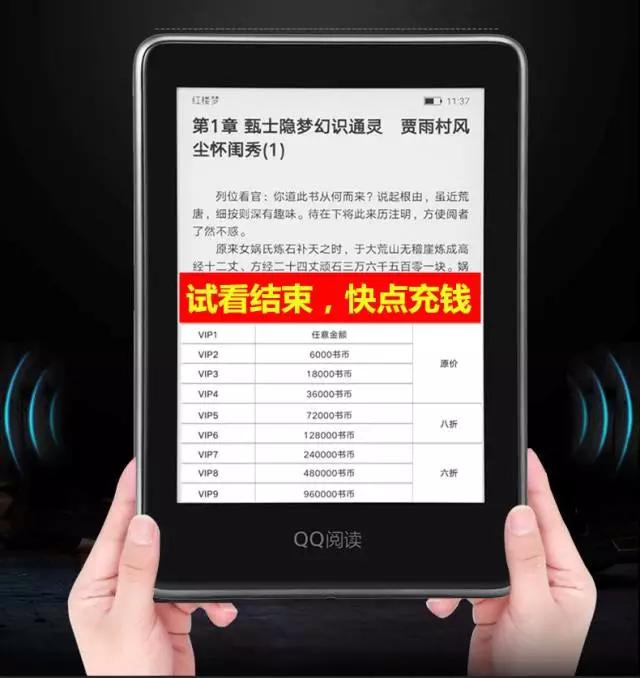 以阅文集团的 QQ 阅读电子书为例,产品本身与其他厂家的电纸书其实并无太大差异,优势在于,电子书连接着阅文集团海量的内容库。