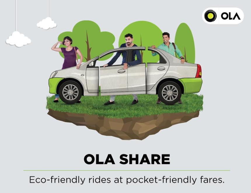 一个月之后,Ola也赶紧推出了拼车服务——Ola Share,不同于UberPool随机选取乘客,Ola Share还可让用户匹配自定义社交圈子中的人。