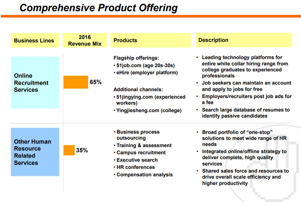 具体业务上,在线招聘服务营收同比增长19.0%至4.439亿元(约合6550万美元);其它人力资源相关营收同比增长22.8%至2.292亿元(约合3380万美元)。根据公司投资者关系网站,在线招聘服务指的是平台型的业务,通过不同定位的网站连接招聘者和应聘者,这部分的业务是公司营收的大头;其他人力资源相关的服务指人力外包、人才培训和评估、团建等给公司人力资源部提供的解决方案。