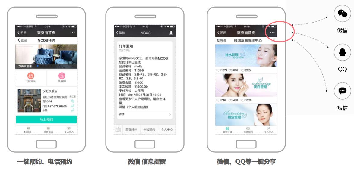 对C端客户而言,可以通过微商城预约美容师并打分点评。服务结束后,在系统里能清晰地看到消费记录,包括曾为自己服务过的美容师、产品、疗程,存了多少钱、还剩多少,每次消费后还会收到电子签名推送。