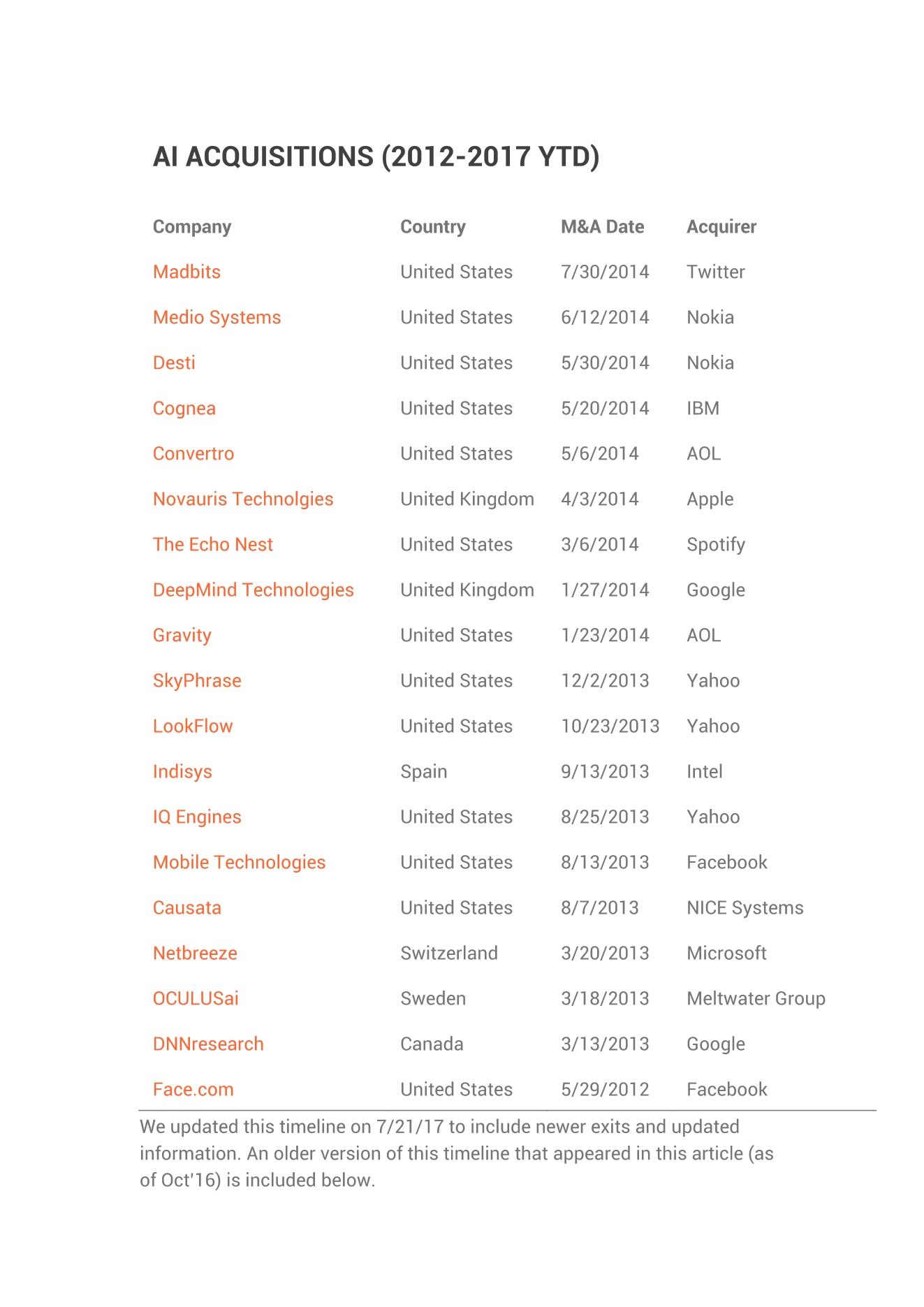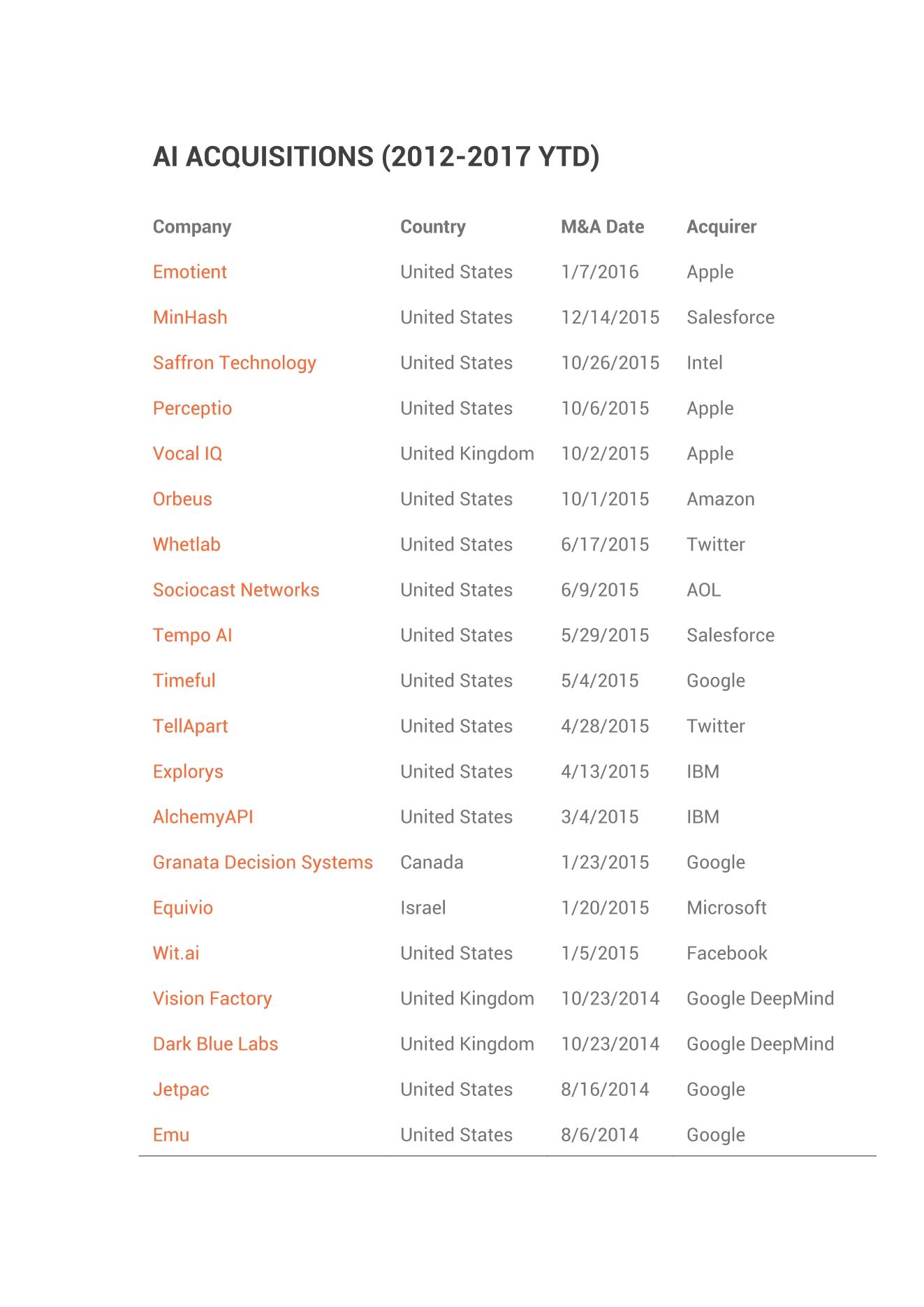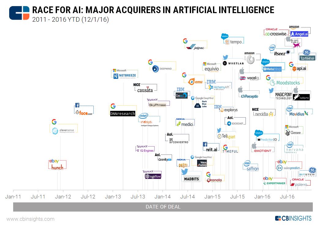 数据看趋势 | 谷歌、百度、苹果和英特尔们的 AI 收购战役